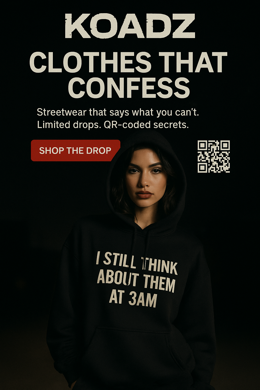 KOADZ was born out of late-night thoughts, unread messages, and the confessions we never said out loud. We turn confessions into streetwear, oversized hoodies, tees, and more stitched with words that hit like 3AM voicemails.